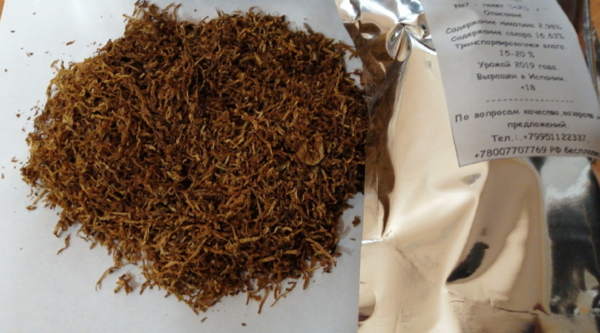Сырье для изготовления удобрений на основе измельченных листьев и стеблей табачного растения . Балканская лёгкая смесь на основе Virginia Gold №15, Virginia Gold №19, Герцеговина Флор. К: 3 из 10 Н: 3,98 % С: 28 %